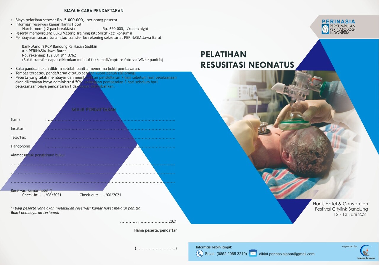 November 29 @ 8:00 am - November 30 @ 5:00 pm Workshop Resusitasi Neonatus (PRN) PERINASIA Jawa Barat