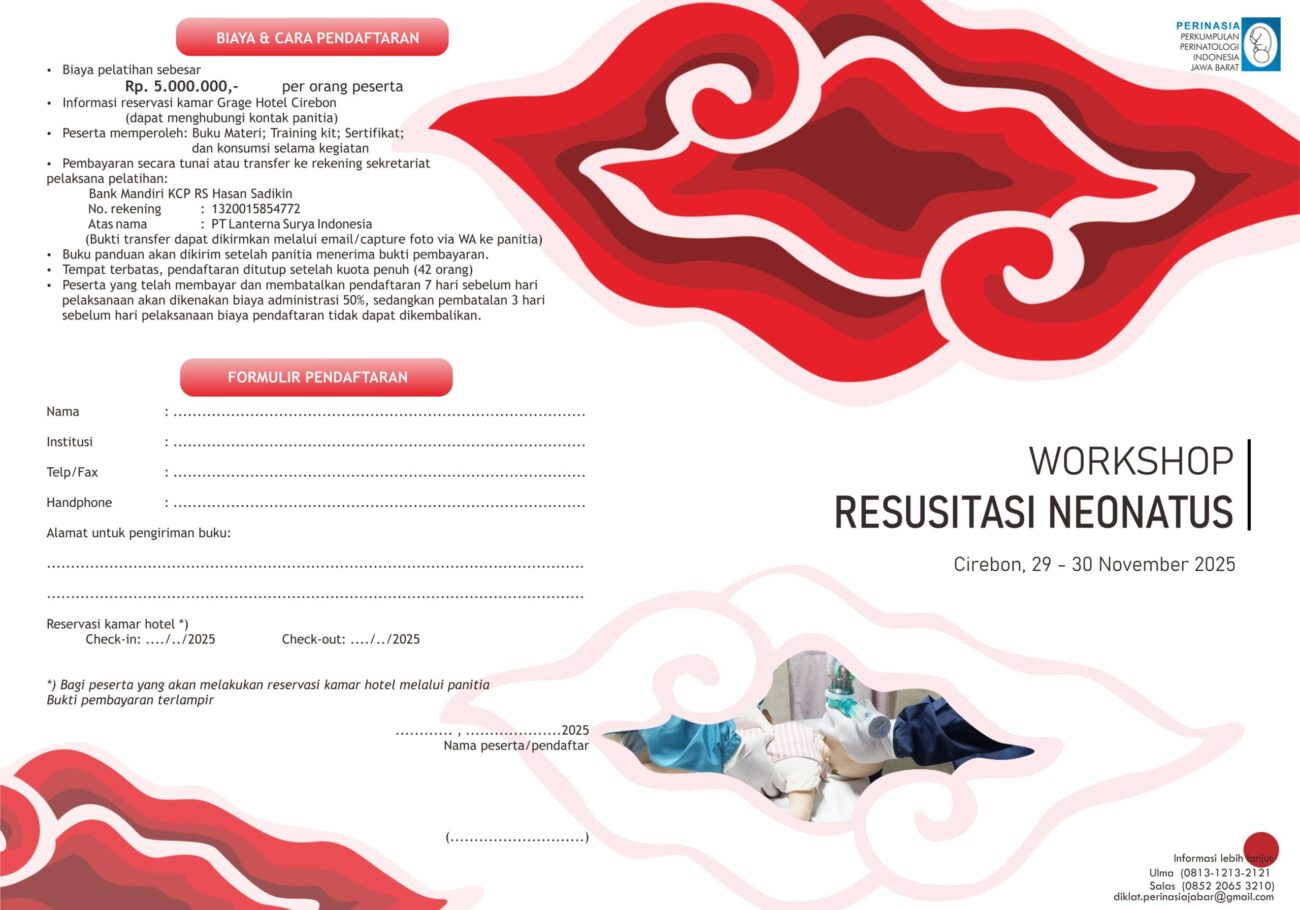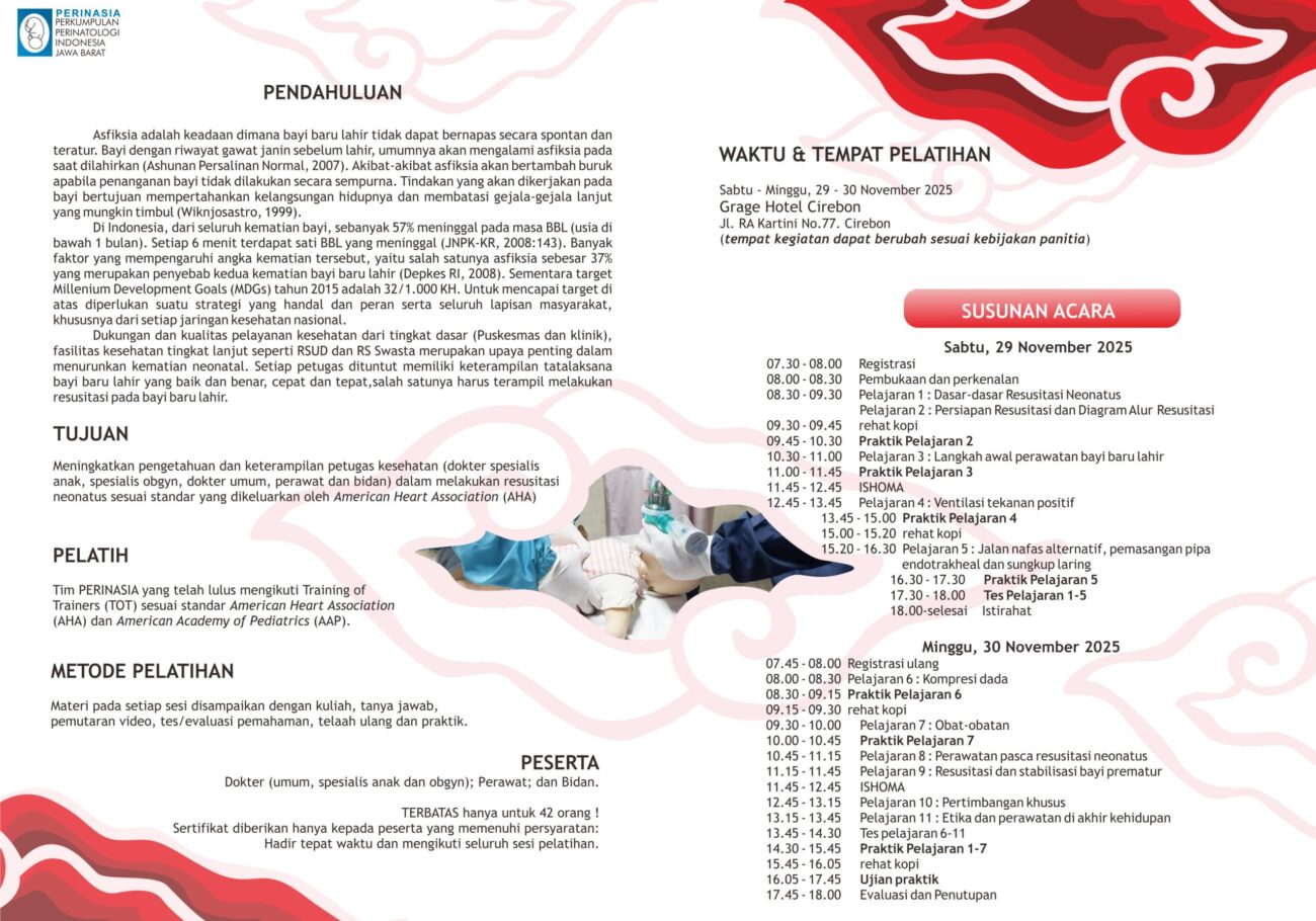 November 29 @ 8:00 am - November 30 @ 5:00 pm Workshop Resusitasi Neonatus (PRN) PERINASIA Jawa Barat